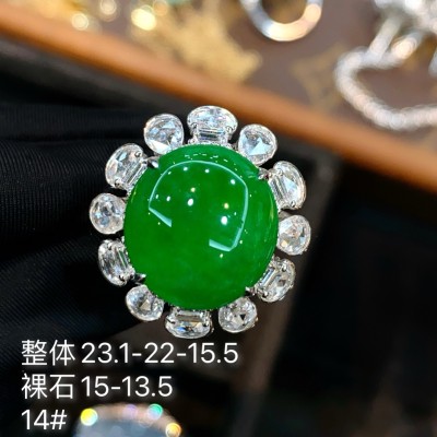 에메랄드 반지, 완전한 녹색 알 반지, 빅 다이아몬드 세팅, 전체:23.1-22.15.5, 누드 스톤:15.0-13.5