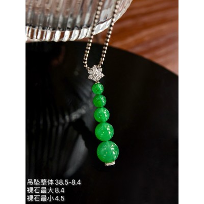 에메랄드 펜던트, 18k 금으로 그린 비즈 가득 박아 넣은 펜던트, 전체:38.5-8.4, 누드 스톤 최대:8.4, 최소:4.5