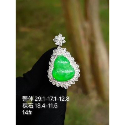 에메랄드 반지, 풀 그린 호리 펜던트 두 가지 스타일, 전체:29.1-17.1-12.8, 누드 돌:13.4-11.5